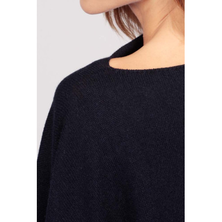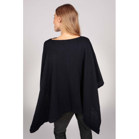 Cashmere boat neck poncho navy blue