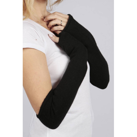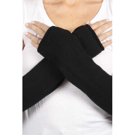 Our black pure cashmere fingerless wrist warmers are knitted in Italy with 100% cashmere wool. Great quality at great price, directly from the studio. They have a hole for your thumb and nicely cover your arms.