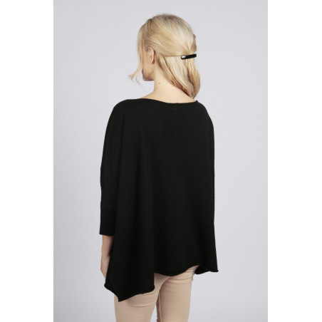 Pure Cashmere Poncho Cape, Plain Knitted in Black