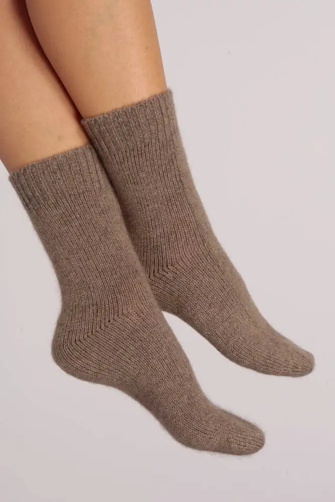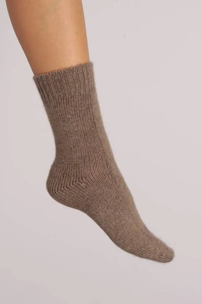 Cashmere Bed Socks in Camel Brown Plain Knit