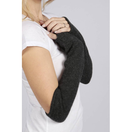 Our Charcoal Grey pure cashmere fingerless wrist warmers are knitted in Italy with 100% cashmere wool. Great quality at great price, directly from the studio. They have a hole for your thumb and nicely cover your arms.