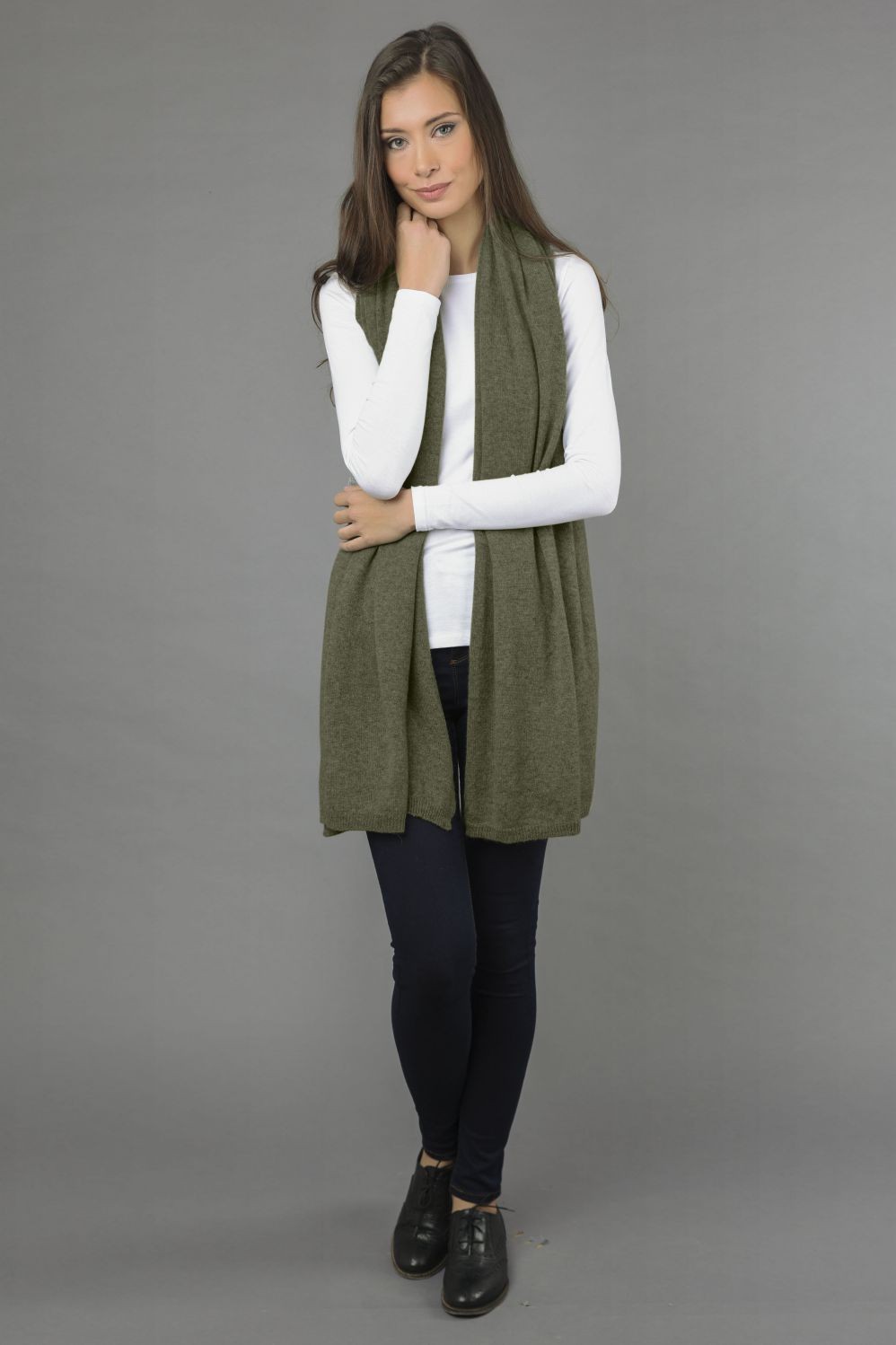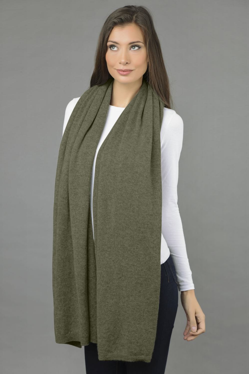 Gestrickter Reiner Kaschmir Schal in Militärgrün