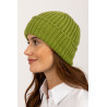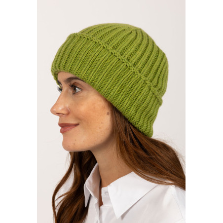 Unsere Damen-Kaschmirmütze in lindgrün wird in Italien mit erstklassigem Kaschmirgarn und einer breiten Nadelstärke gestrickt, was sie unglaublich weich macht.