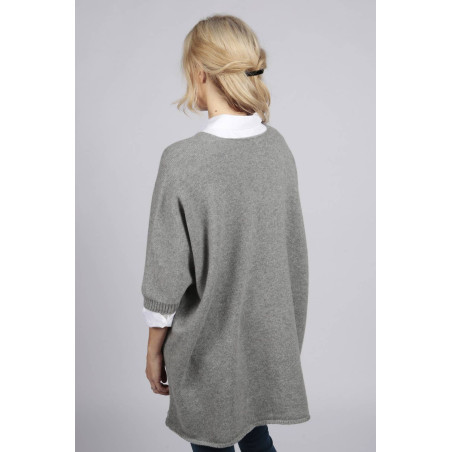 Reiner Kaschmir Glatt Gestrickter Poncho Umhang in hellgrau