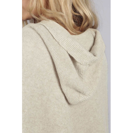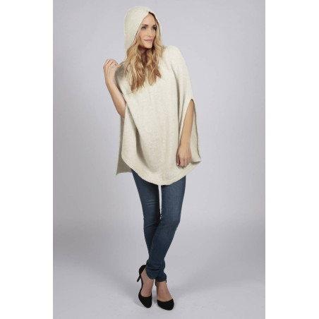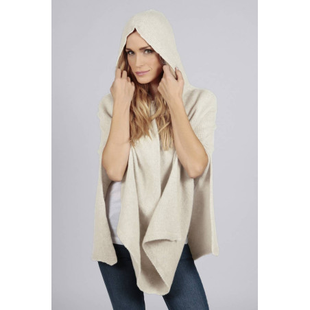 Mantella in puro cashmere con cappuccio di colore Bianco panna. Un poncho in cashmere morbido ed irresistibile, versatile e di qualità Made in Italy.