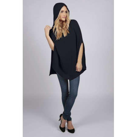 Mantella in puro cashmere con cappuccio di colore Blu navy. Un poncho in cashmere morbido ed irresistibile, versatile e di qualità Made in Italy.