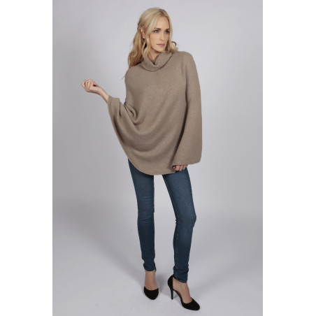 Reiner Kaschmir Rollkragen Poncho Umhang in kamelbraun