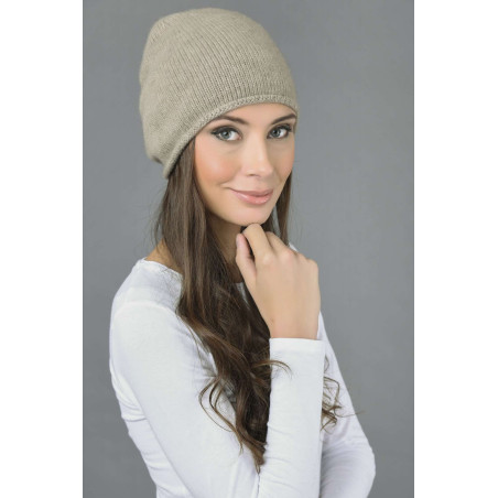 Cappello Cammello in 100% cashmere. Caldo e traspirante, con bordo leggermente arricciato. Perfetto sia per occasioni eleganti che per lo sci.