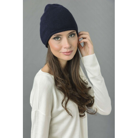 Cappello Blu navy in 100% cashmere. Caldo e traspirante, con bordo leggermente arricciato. immancabile nel tuo guardaroba.