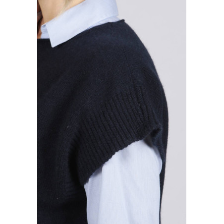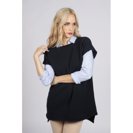Navy blue women's pure cashmere sleeveless sweater