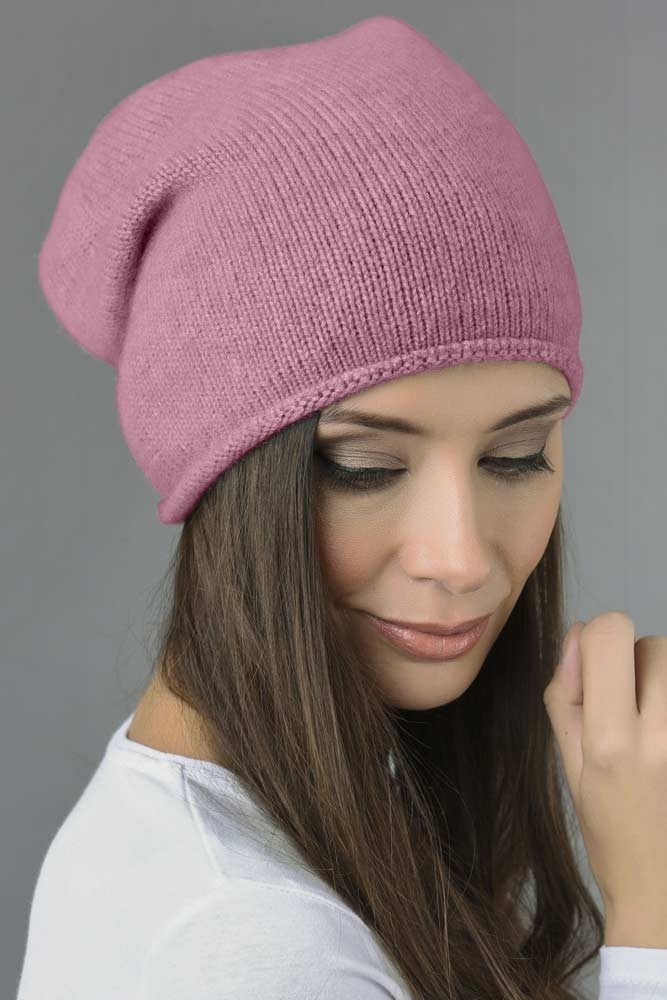 Le bonnet en rose antique exclusif slouchy pur cachemire pour elle. Confectionné en Italie et parfaitement tricoté pour plus d'attractivité visuelle. Confortable et élégant présenté dans l'emballage rigide signé en Italie en cachemire