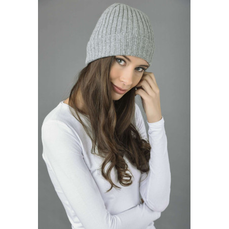 Bonnet style pêcheur côtelé pur cachemire en gris clair