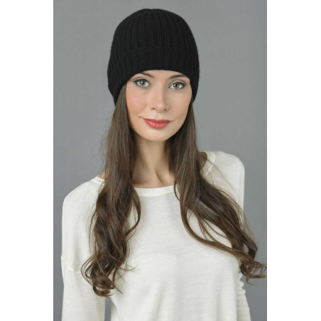 Confectionné en Italie en 100% cachemire et légèrement côtelé. Un bonnet exclusif de cachemire de haute qualité en noir en ajout à vos vêtements d'hiver. parfait pour skier ou simplement se promener en hiver.