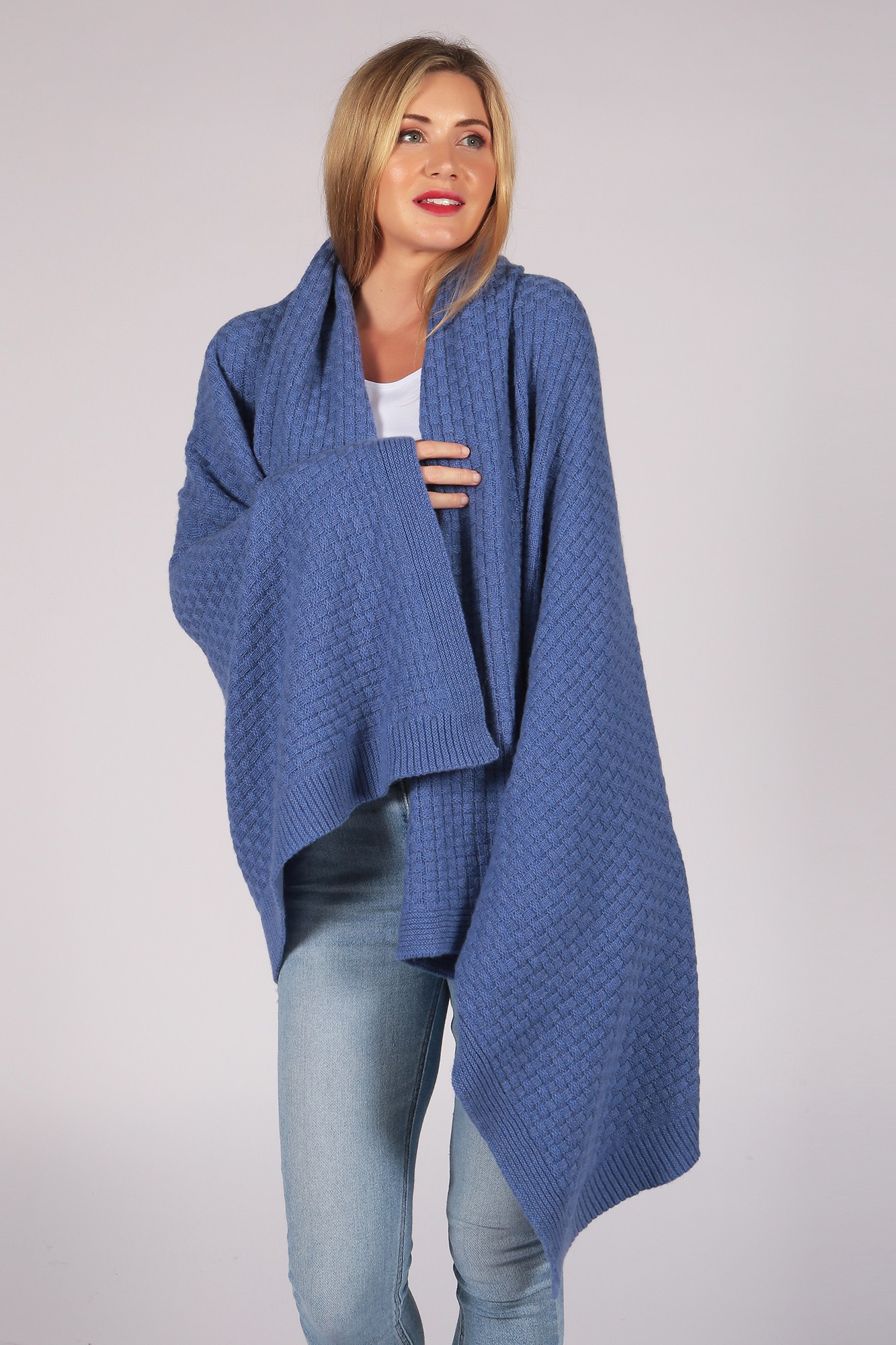 Couverture pour bébé pur cachemire maille torsadée en Light blue