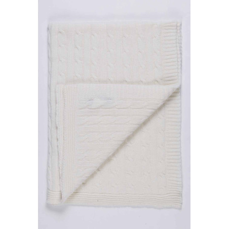 Couverture pour bébé pur cachemire maille torsadée en crème blanc