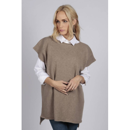 Notre chandail sans manches pur cachemire en chameau brun est parfaitement tricoté en Italie avec de la laine 100% cachemire. Taille unique, livré dans notre boîte rigide.