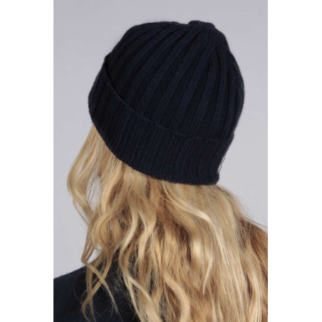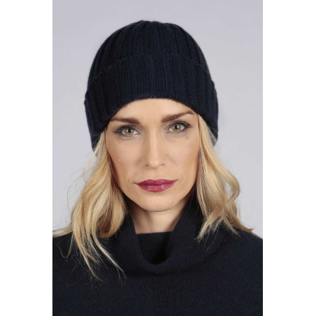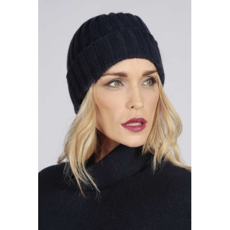 Questo cappello a coste in puro cashmere Blu navy è indispensabile nel tuo guardaroba. Disegnato e prodotto in Italia, il nostro berretto in puro cashmere di alta qualità resisterà ad ogni moda