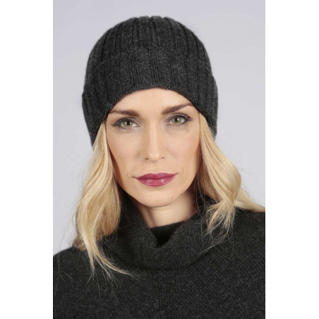 Cappello a coste in puro cashmere color Grigio Antracite