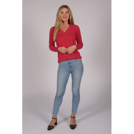 Our classy V-neck women's cashmere sweater in Rosso Corallo will be a great addition to your wardrobe. Made in Italy with top-notch 100% cashmere yarns, this Rosso Corallo cashmere sweater with a V neck is knitted with seamless technology for maximum comfort and innovative style.