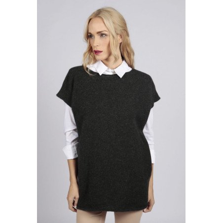 Maglia 100% cashmere smanicata da donna Grigio Antracite