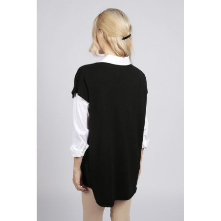 Il nostro maglione senza maniche in puro cashmere di color Nero è fatto in Italia con filati in di altissima qualità. Taglia unica e rifinitura perfetta per un oggetto di alto lusso.