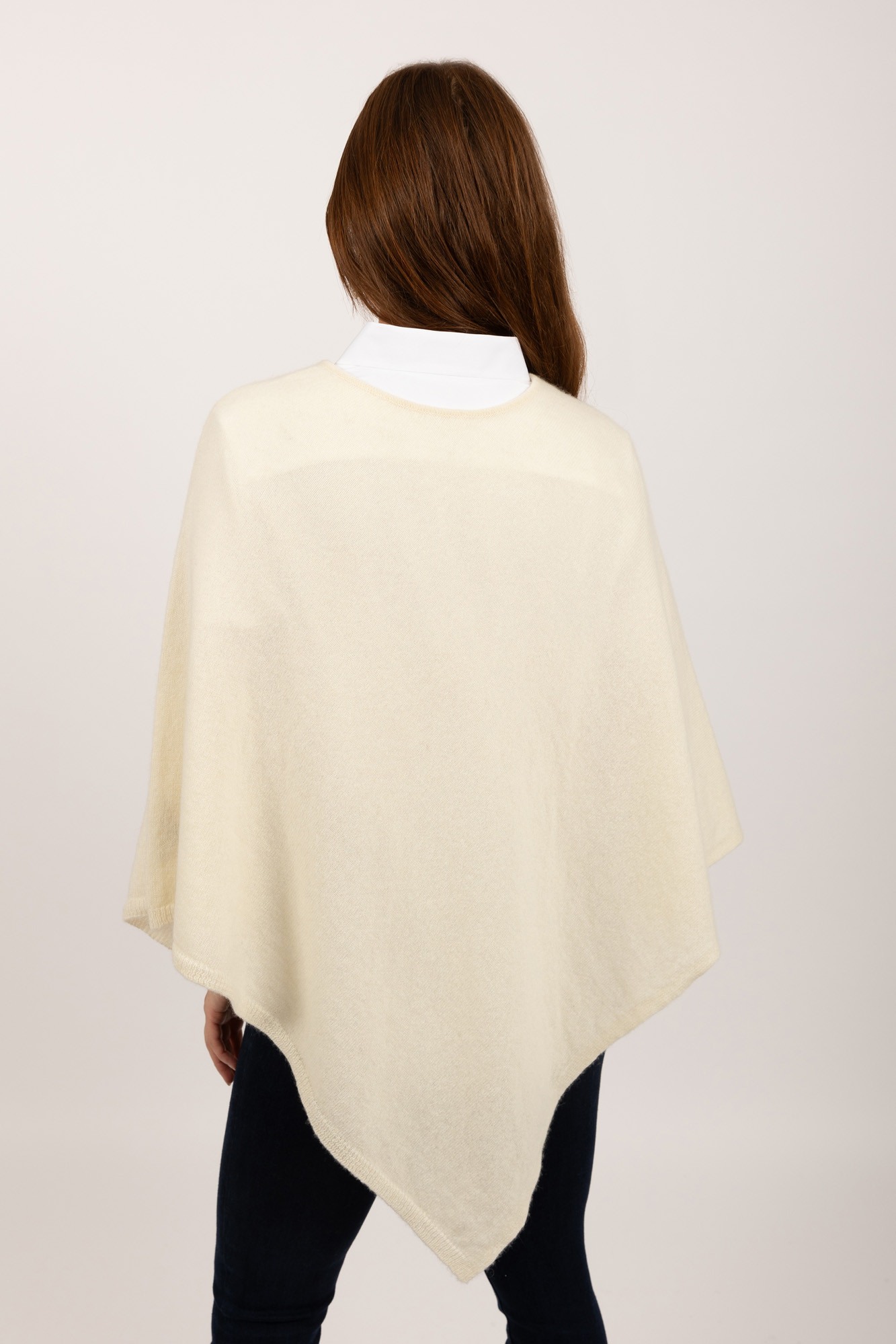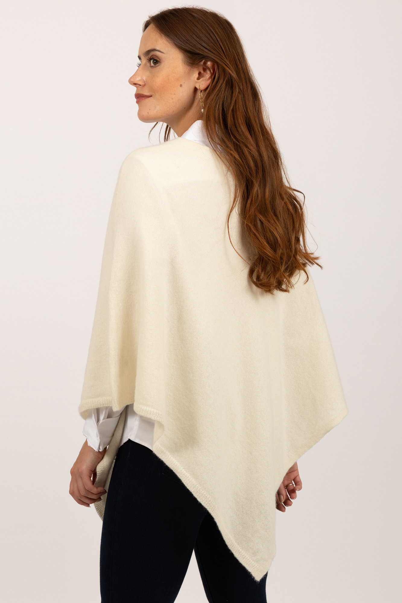 Poncho in Cashmere a V con Scollo a Barca Bianco Panna