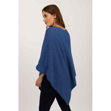 Poncho in Cashmere a Forma di V con Scollo a Barca Blu Pervinca