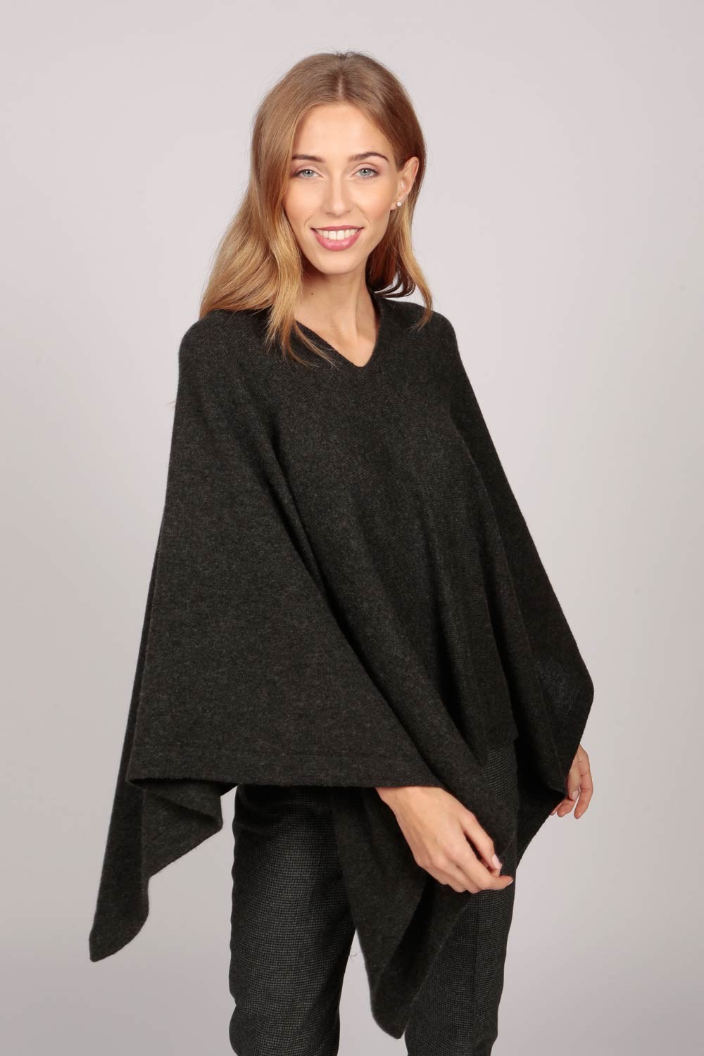 Questo poncho in cashmere di color Grigio Antracite con scollo a barca è realizzato con una grande quantità di puro cashmere. Scopri la collezione e tutti tutti gli altri colori!