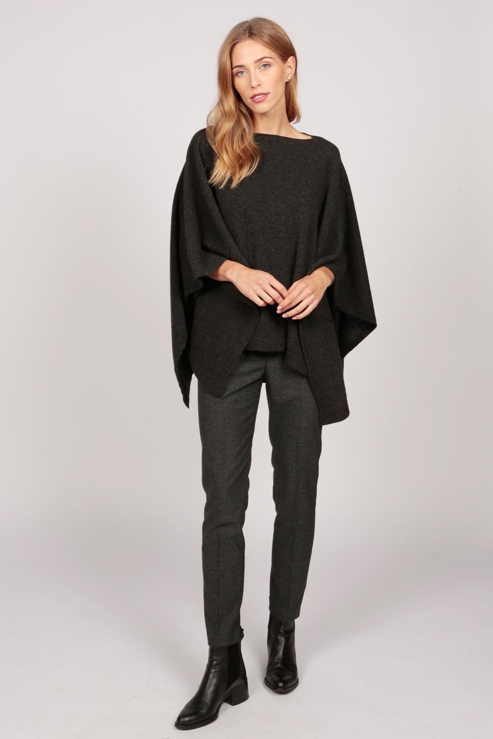 Poncho collo a barca in Grigio Antracite